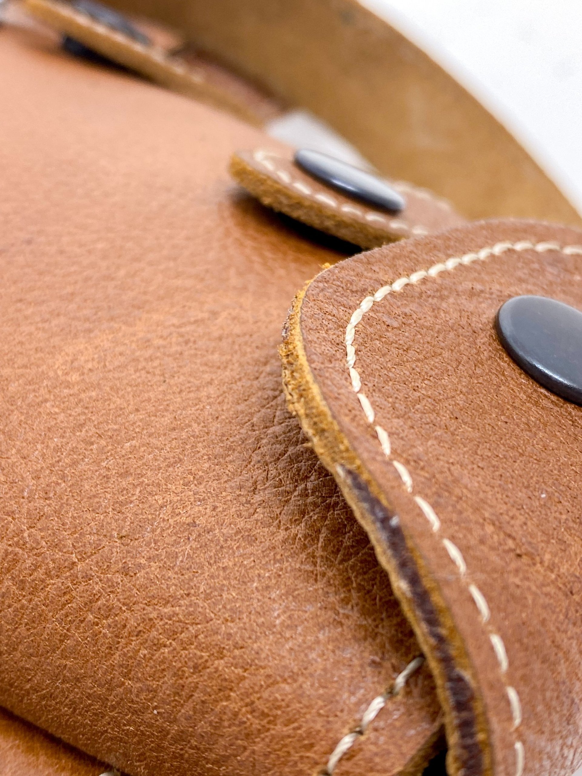 Ao invés de materiais que se deterioram em meses, escolhemos couro de qualidade — porque sustentabilidade também é fazer durar o que você ama usar.
